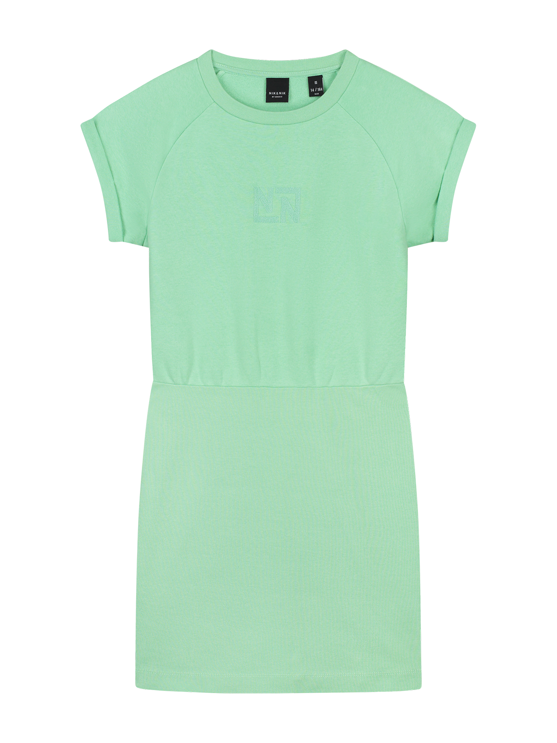 Mooie jurk met logo van Nik&Nik. De jurk heeft een omslag in de mouw en elastiek in de taille.