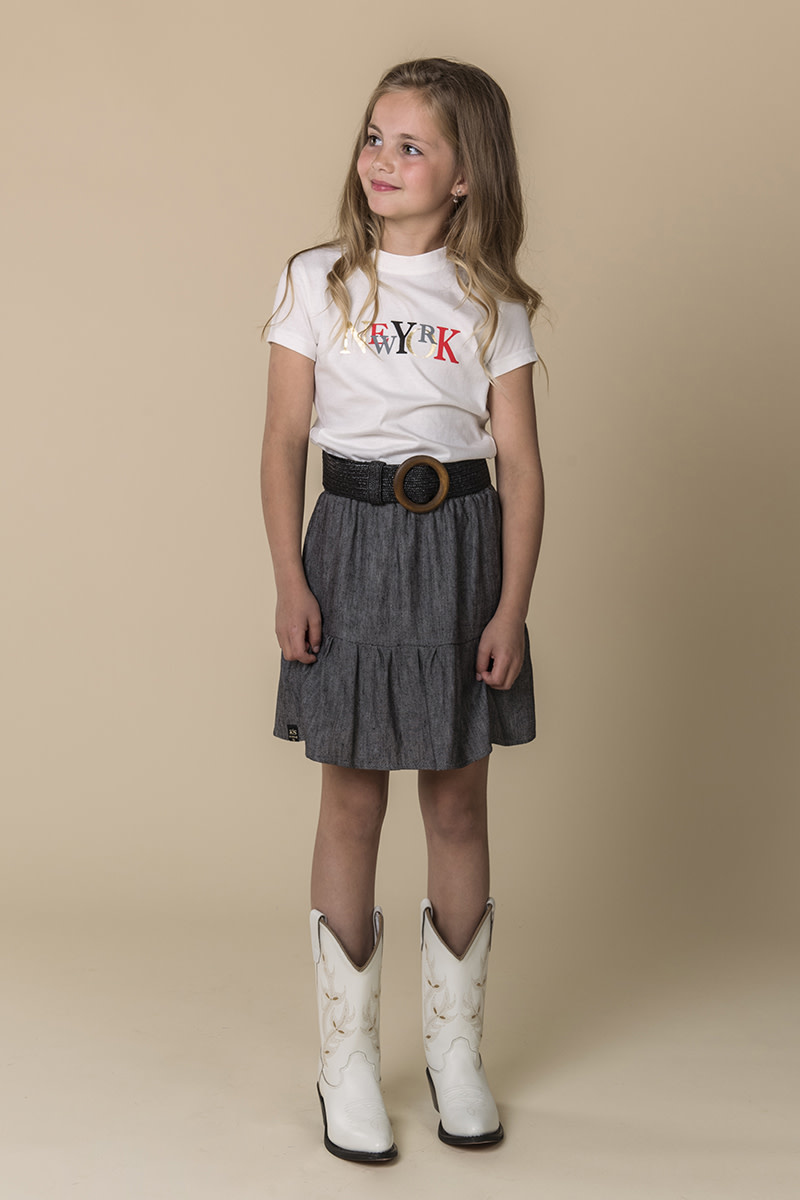 Super leuk stroken rokje van KIE stone. Het rokje heeft een elastieken band in de taille en heeft een knie lengte.