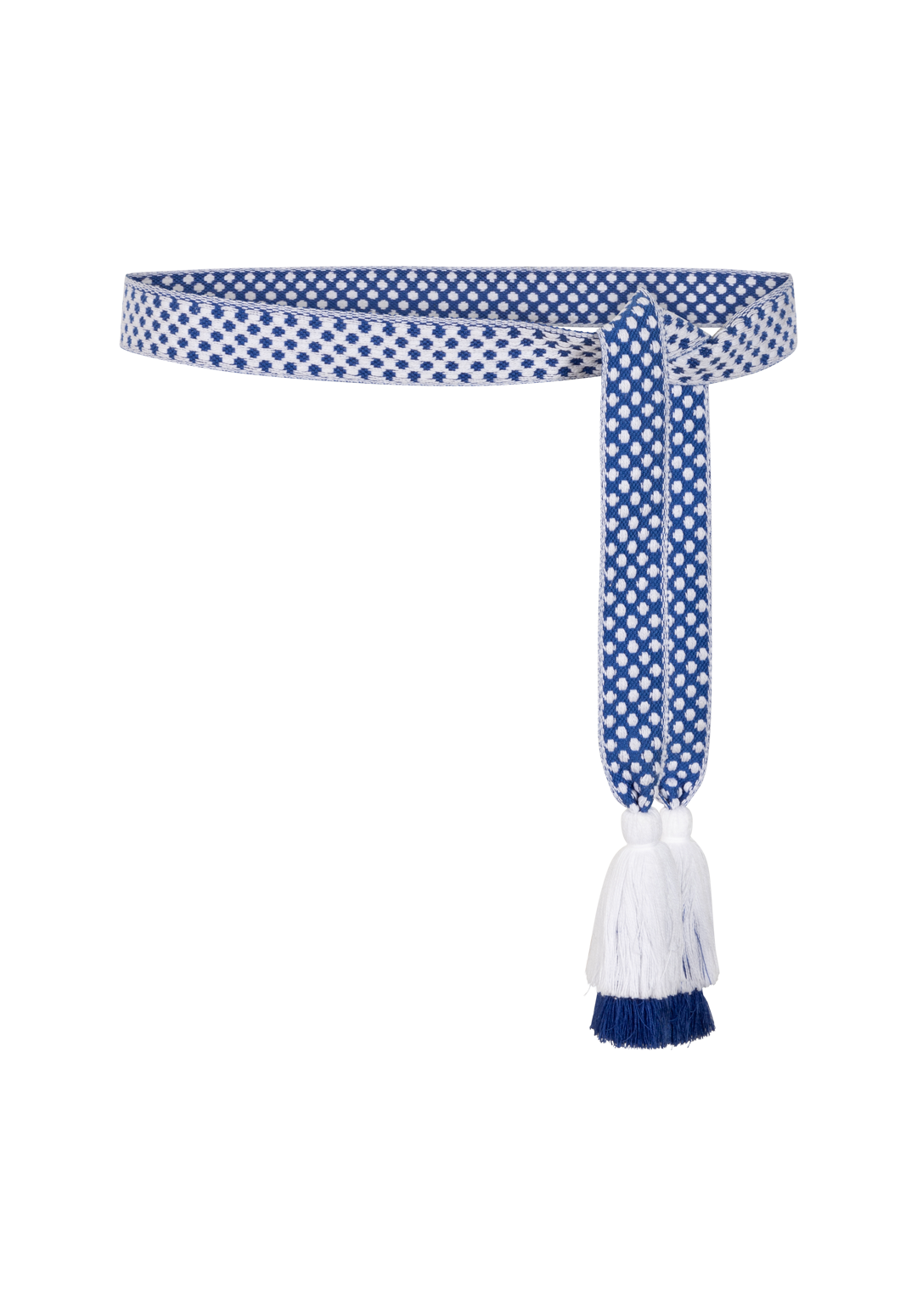 Super leuke blauw wit geblokte knoopriem met flosjes van Ai&Ko
