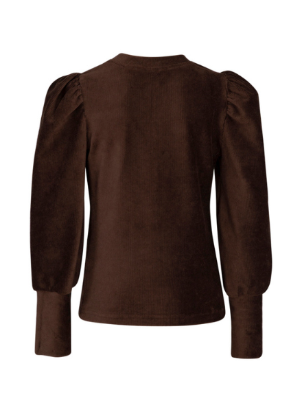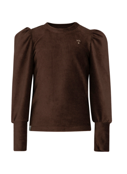 Toffe longsleeve in fijne zachte ribstof van Kie Stone. De longsleeve heeft leuke pofmouwen mete boordjes. Op de voorkant zit het logo van Kie Stone geborduurd met een gouddraadje.