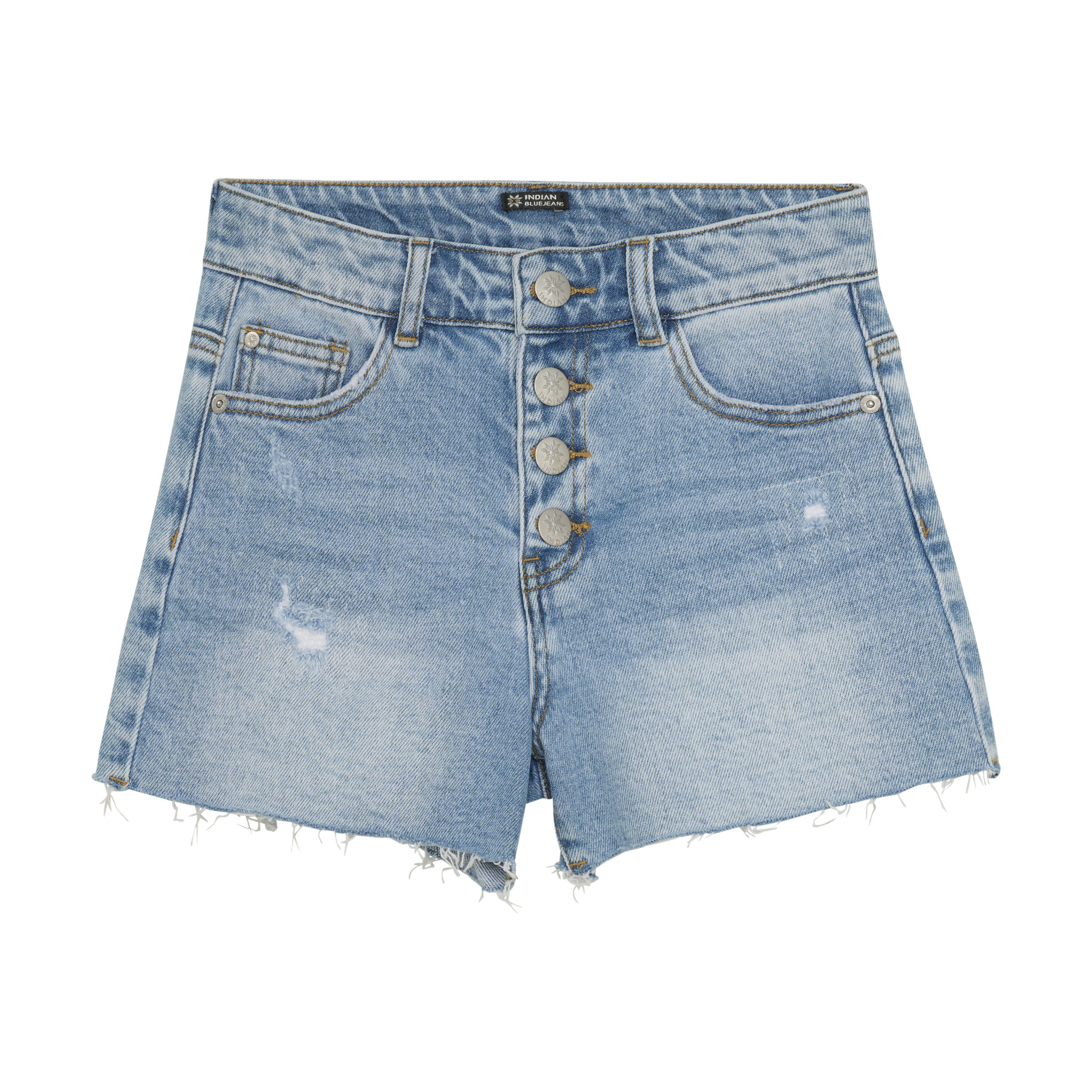 Wide Denim Short Damaged Light Denim Blue